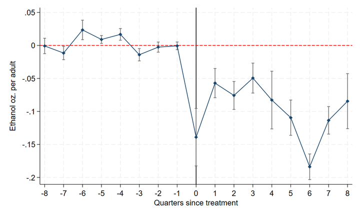 While most research on alcohol taxation examines volume-based excise taxes, much less is known about the effects of sales taxes, which are applied as a percentage of retail prices and may differ in salience and incidence. This paper evaluates the impact of Maryland’s 2011 three percent alcohol sales tax on household alcohol purchases using NielsenIQ Consumer Panel data and a synthetic difference-in-differences approach. I find that the tax led to a roughly ten percent decline in monthly ethanol ounces purchased per adult per household, equivalent to about two fewer standard drinks per adult per month. Purchases declined across beer, wine, and spirits, providing no evidence of substitution across beverage types. Heavy drinkers also reduced their purchases, while low-income households exhibit more constrained substitution patterns. These results provide new evidence on the behavioral effects of sales taxes and highlight the potential of price-based alcohol policies to reduce consumption and related harms.